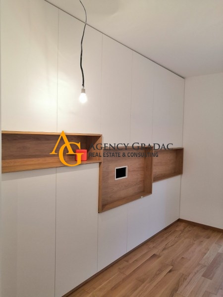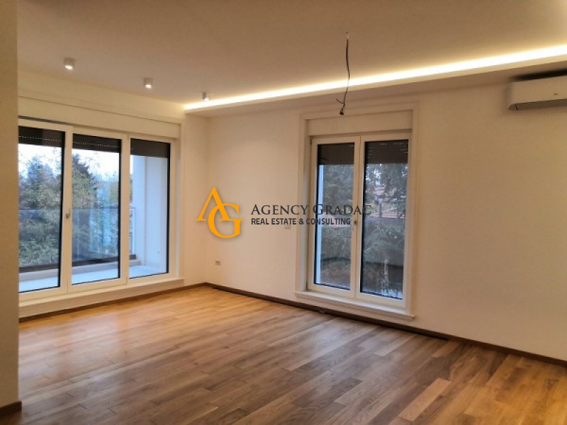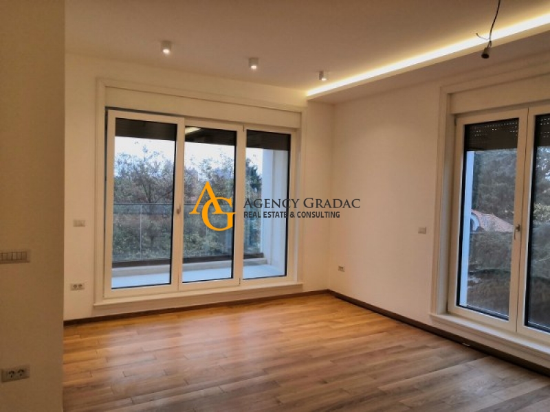 Luksuzan stan na Dedinju u ulici Neznanog junaka površine 100m2 na I spratu u novo-izgrađenom  stambeno-poslovnom kompleksu. Visoki plafoni (3metra),podno grejanje u celom stanu,klima. Stan se sastoji od kuhinje koja je pultom odvojena od dnevno-trpezarijskog dela , izlaz na terasu , spavaćeg bloka koji je odvojen i koji se sastoji od dve spavaće sobe, i dva kupatila. Stanu pripada i jedno garažno mesto u garaži zgrade. Stan ima ugrađen kuhinju sa tehnikom,plakare u spavaćim sobama , ali se može kompletno opremiti u dogovoru sa zakupce.