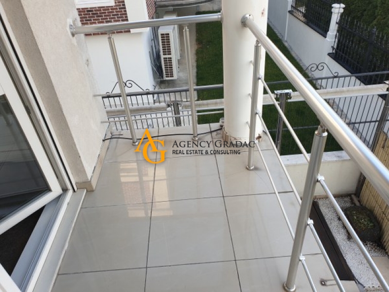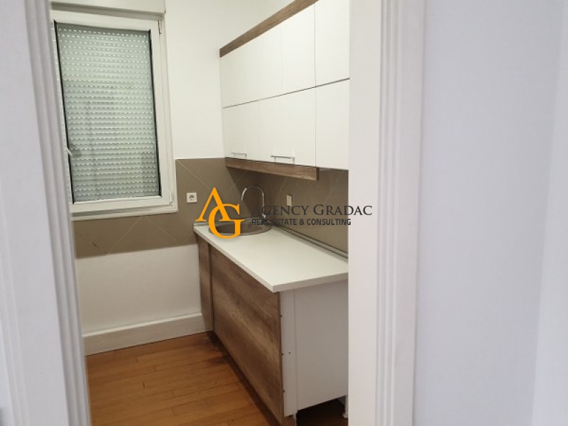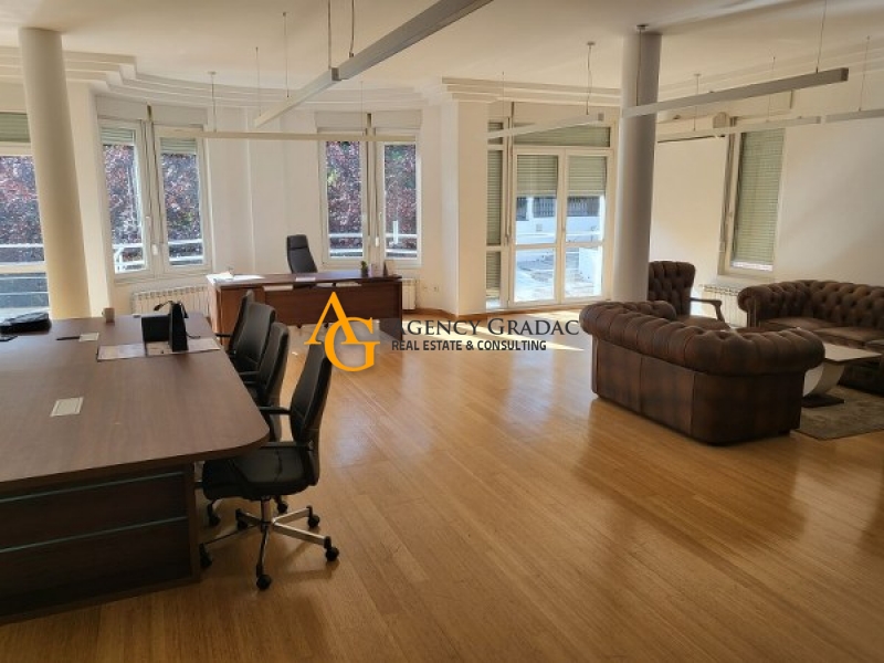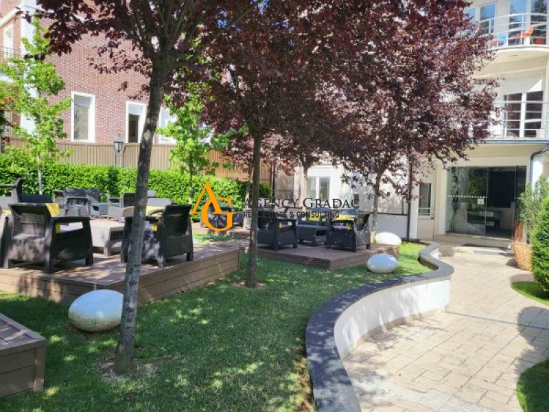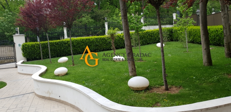 Apartment - 150m2 on the First floor. The apartment consists of 3 bedrooms / offices, 2 bathrooms, a kitchen that is separate, a spacious day-dining area / a spacious open space that is divided, a terrace. One garage place, indoor pool, sauna. Beautiful yard. The building has a reception, elevator, well maintained.