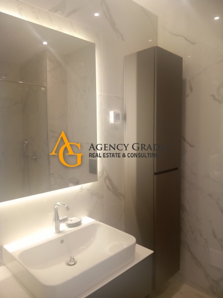 Stan ukupne površine 95m2 u Kuli West 65 na 5 spratu na Novom Beogradu . Stan se sastoji od ulaznog hodnika , spavaćeg bloka koga čine : spavaća soba , kupatilo (tuš kabina ), druge spavaće sobe koja ima svoje kupatilo (masterbedroom) , ostave , kuhinje koja je pultom odvojena od dnevno-trpezarijskog dela . Stan je prostran i ima dosta svetlosti . Stanu pripada i jedno garažno mesto , nivo -1 . Odlična pozicija stana , dobra povezanost sa svim delovima grada, blizina auto-puta, šoping centri , poslovne zgrade itd.
