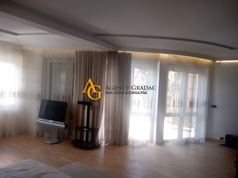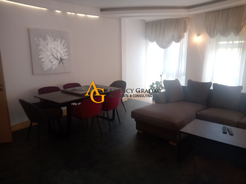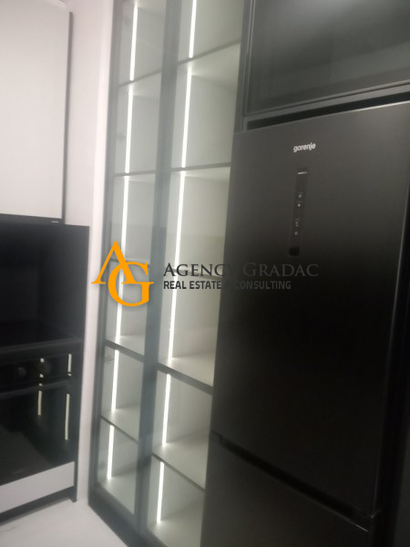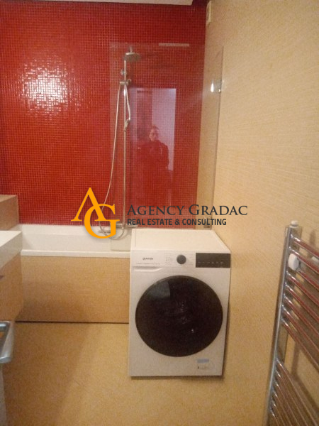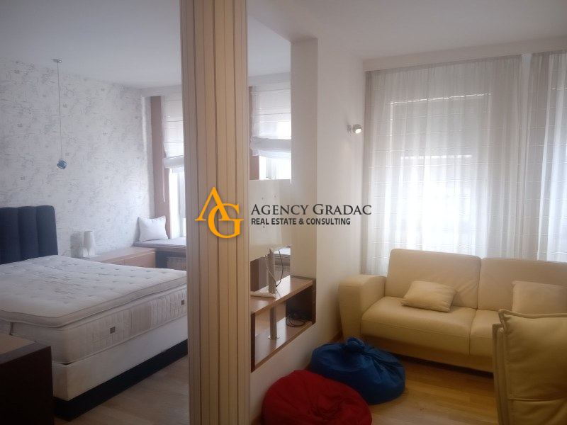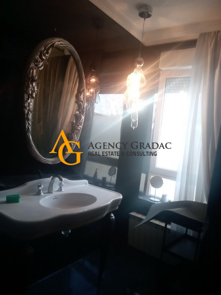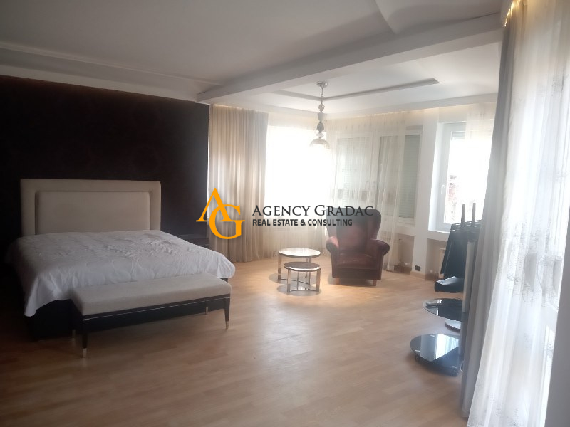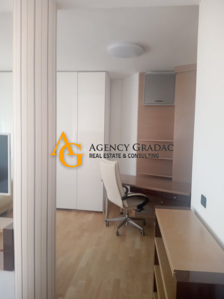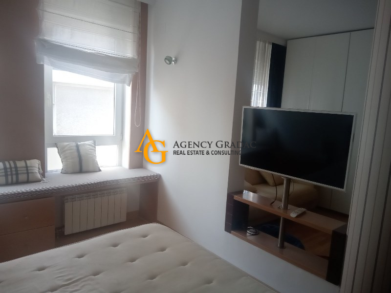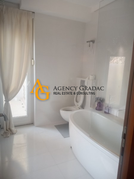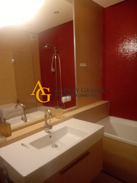 Komforan i lukzusan stan površine 144m2 na I spratu .Stan se sastoji od dve spavaće sobe , svaka soba ima svoj garderober i kupatilo , jedno kupatilo ima kadu , drugo kupatilo ima tuš kabinu , dnevno-trpezarijski deo sa kuhinjom , kutalilom (kupatilo sa kadom ) i jednom lođom. Stan je moderno opremljen , prostran sa dosta svetlosti . U dvorištu zgrade koje se odražava i ima zelenila nalazi se i bazen . Stanari zgrade mogu da korite i saunu kao i teretanu koja se nalazi u samom objektu . Stanu pripada i jedno garažno mesto.